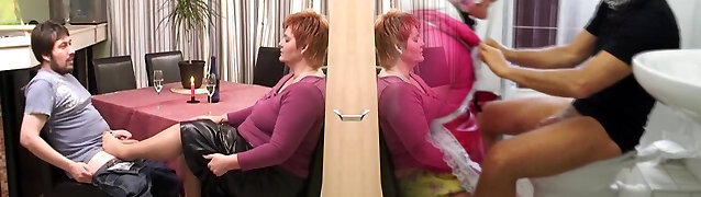 cougar footjob under table tease very very sexy