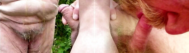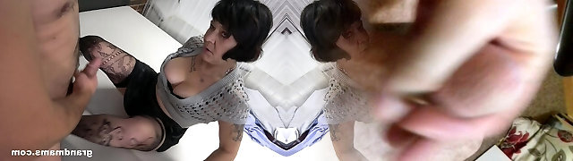 Unbelievably horny granny gives super-steamy blowjob to her man