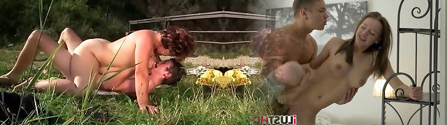 Old hairy granny meets strong young guy