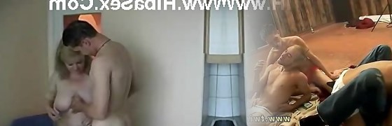 Mom with saggy tits deepthroat and fuck lucky daddy