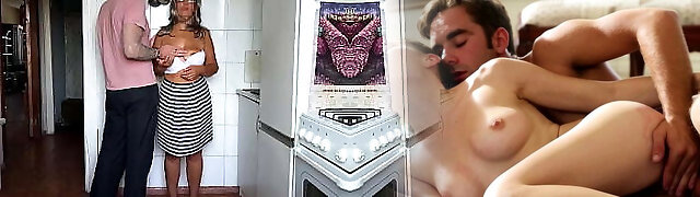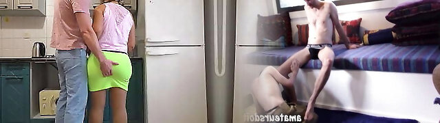 Part.1, indian step-sister cooking in kitchen and drilling with stepbrother