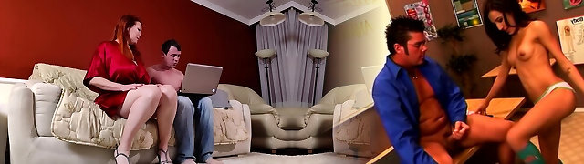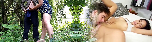 My stepmother's bitch gives me a delicious oral job before going out. PT2. We fuck in her couch