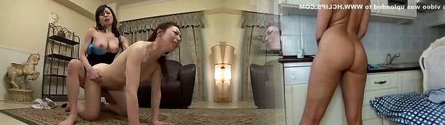 A hot girl doing a mature all girl mom on the sofa
