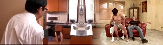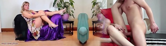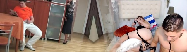 Son with Stepmom together in sofa have strong erection when witness mom's ass