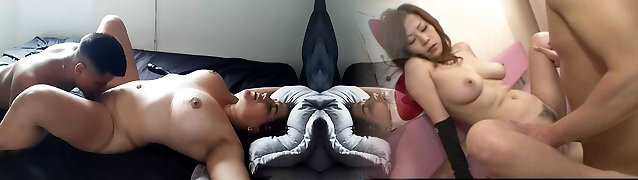 Hot Girlfriend gets fucked on fat weenie while watching boyfriend masturbate