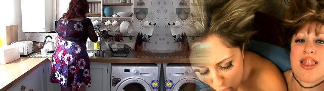 Redhead BBW fledgling mature MILF masturbates in the kitchen