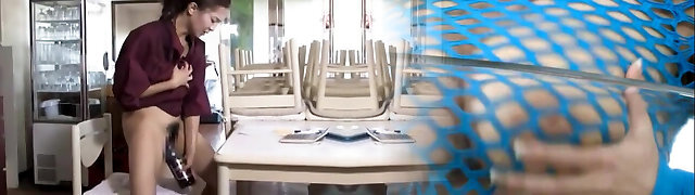 in the morning, in the kitchen, a fat doll masturbates my bone to a cumshot