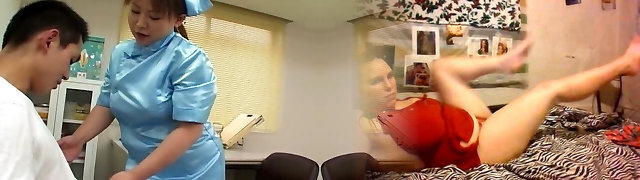 Old Asian nurse sucking and riding patient cock