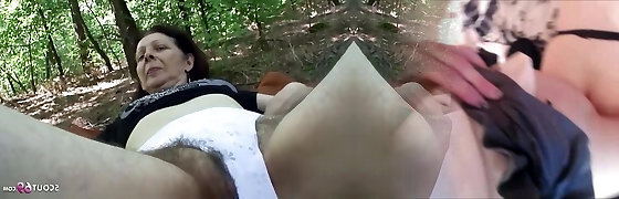 74yr Old Grandmother With Fur Covered Pussy Pov Outdoor Sex With Teen