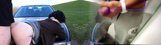 german mature hitchhiker harsh outdoor at the car creampie