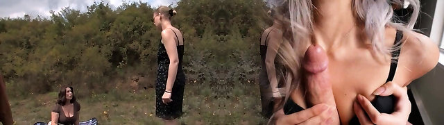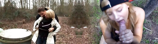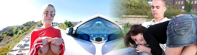 Picked up blonde Milf with massive boobs is fucked outdoors by stud outdoors
