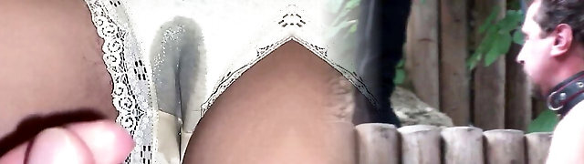 Naughty chick drops her undies to tease and sucks a manstick in outdoors