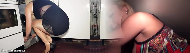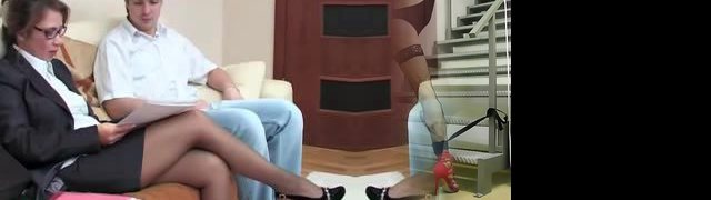 Nylonjunge ist GEIL auf GILF in Feinstrumpfhose