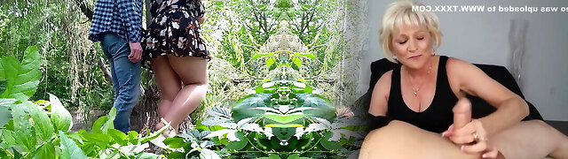 Unfamiliar milf in pantyhose masturbated and milked my pink cigar outdoors
