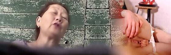 Mature Asian lady in the shabby restroom room filmed on covert cam