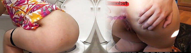 Married nymph excited by toilet masturbation