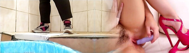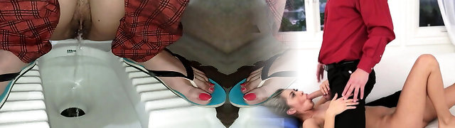 Russian Gorgeous instructor was doing a lesson and wanted to pee, the student began to look on in the toilet, and then licked and took out thick toys (film one, Alina Tumanova)
