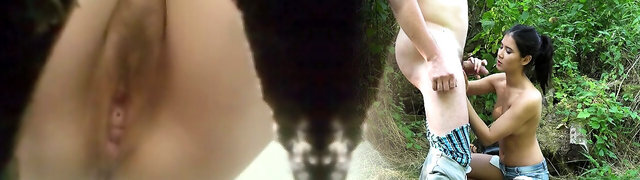 DL2203- Middle-aged duo having an affair in a public toilet in the woods