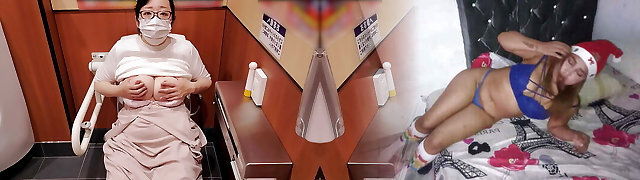 nurse in the hospital wc milks and makes a video on the phone for her subscribers