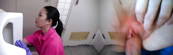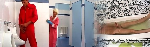 Mature cleaner seduced on the wc floor