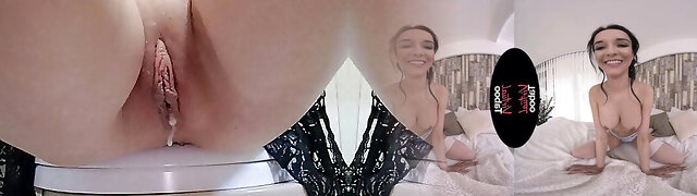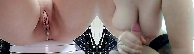 Kinky milf playing with her cum on her lips