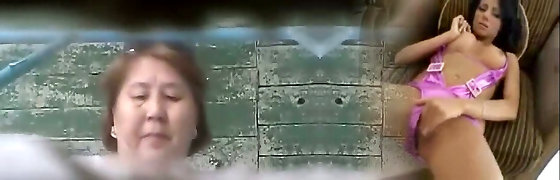 Mature Asian lady in the shabby toilet room filmed on covert cam