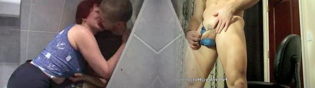 Mom was in the toilet when her steson was taking a shower. Mom and son anal invasion