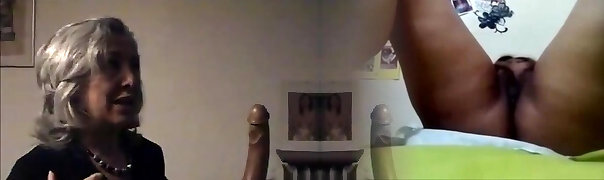 Grandma porn star Sandora uses a huge fuck stick, then has lesbo sex.