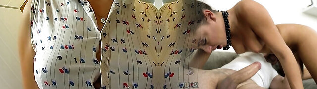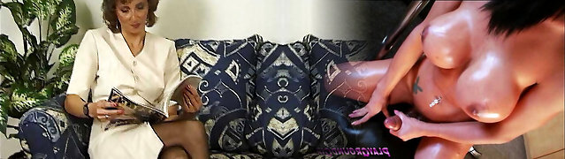 Mature pale skin buxomy majestic woman licked and boned on the couch